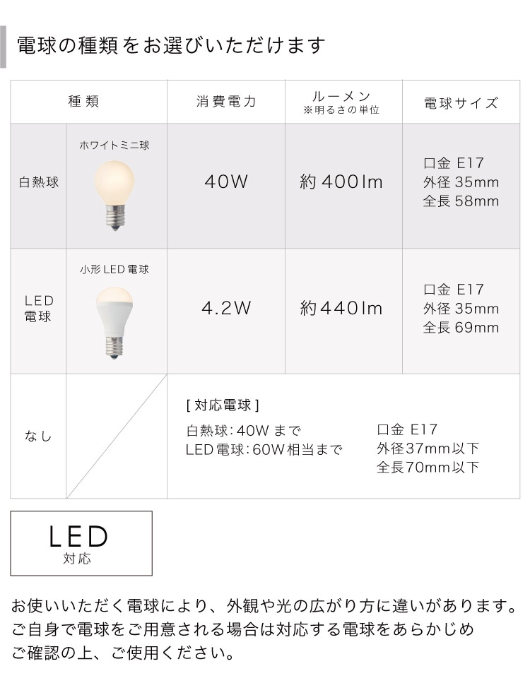 白熱球: E17/40W ホワイトミニ球