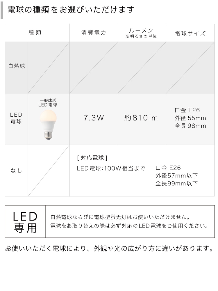 こちらの商品はLED電球専用です