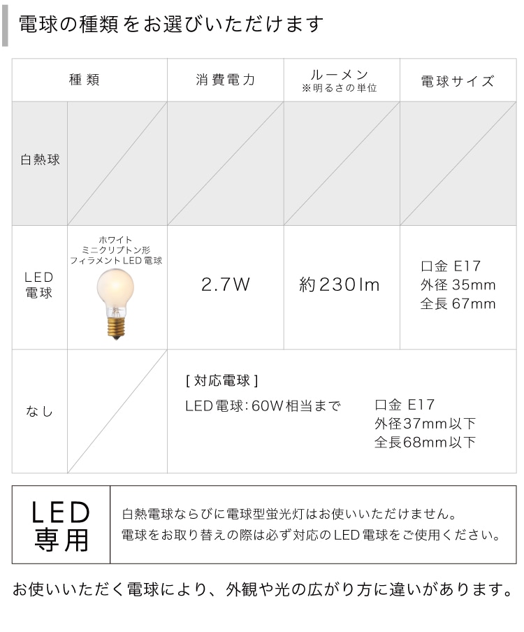 こちらの商品はLED電球専用です