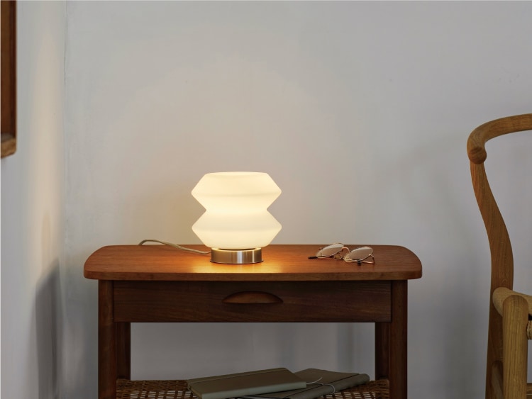 書斎に、ベッドサイドにそっと置くだけで、お気に入りの場所が生まれるミニマルな照明です。