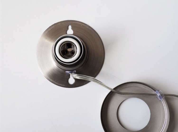 本体を付属のネジ2本で壁に取り付けた後、電球→ガラスセードの順に取り付けます。