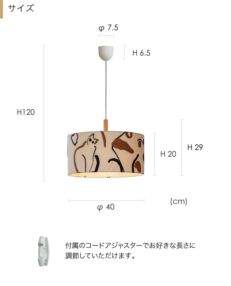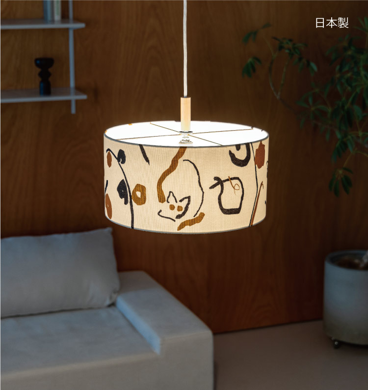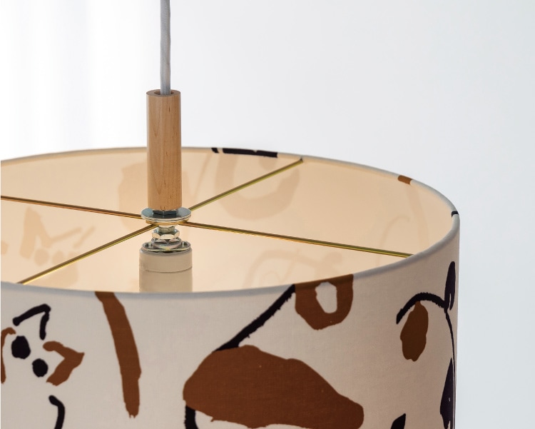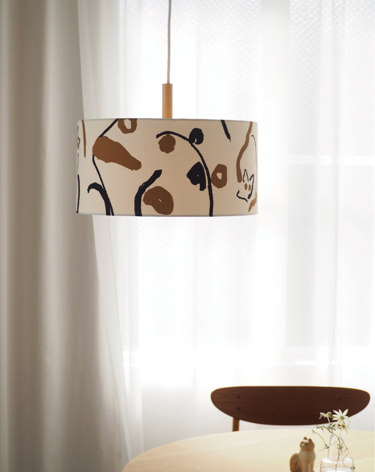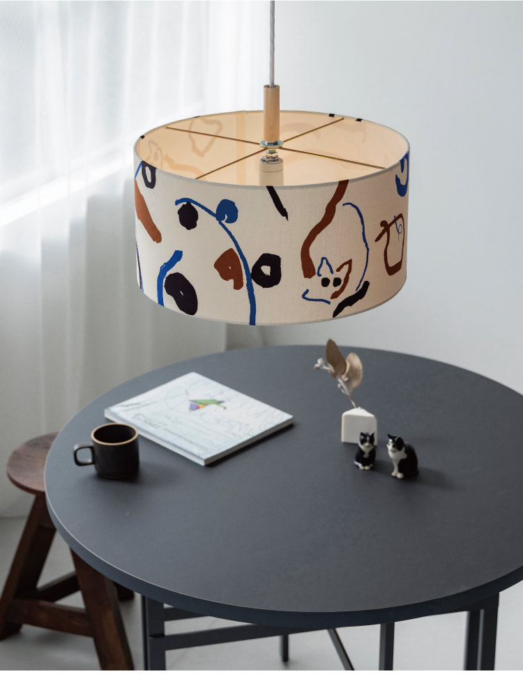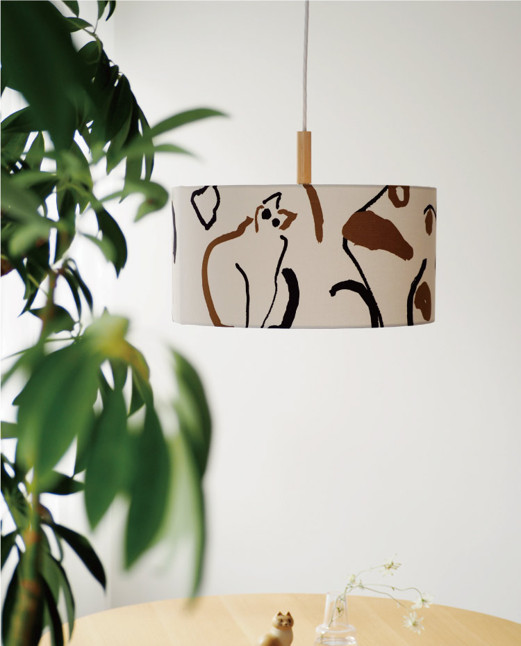 テキスタイルデザイナーのHASHIMOTO NAOKOさんとのコラボレーションから生まれた、気まぐれ猫のペンダントライト。