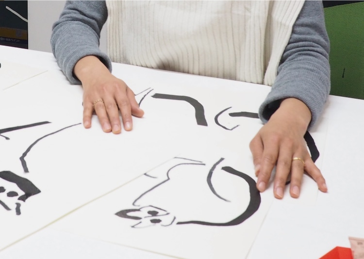 どうしてなのかと尋ねると、「描いているその瞬間の空気や緊張感みたいなものが閉じ込められると思っていて、見た人にもそれを感じてもらえたらいいなと思って。迷うとそれが線に出てしまうので、迷う前に描く。という感じです。」と話してくださいました。