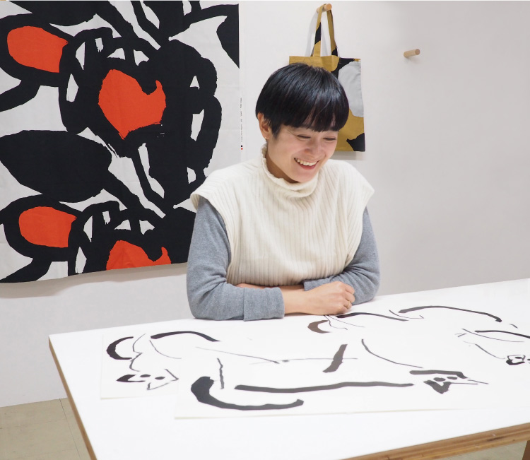 HASHIMOTO NAOKOさんに、どのように柄を考えていくのかそのプロセスをたずねると、「自分で描き溜めたスケッチから、いい線、いい絵を探すところから始めます。」と話してくださいました。