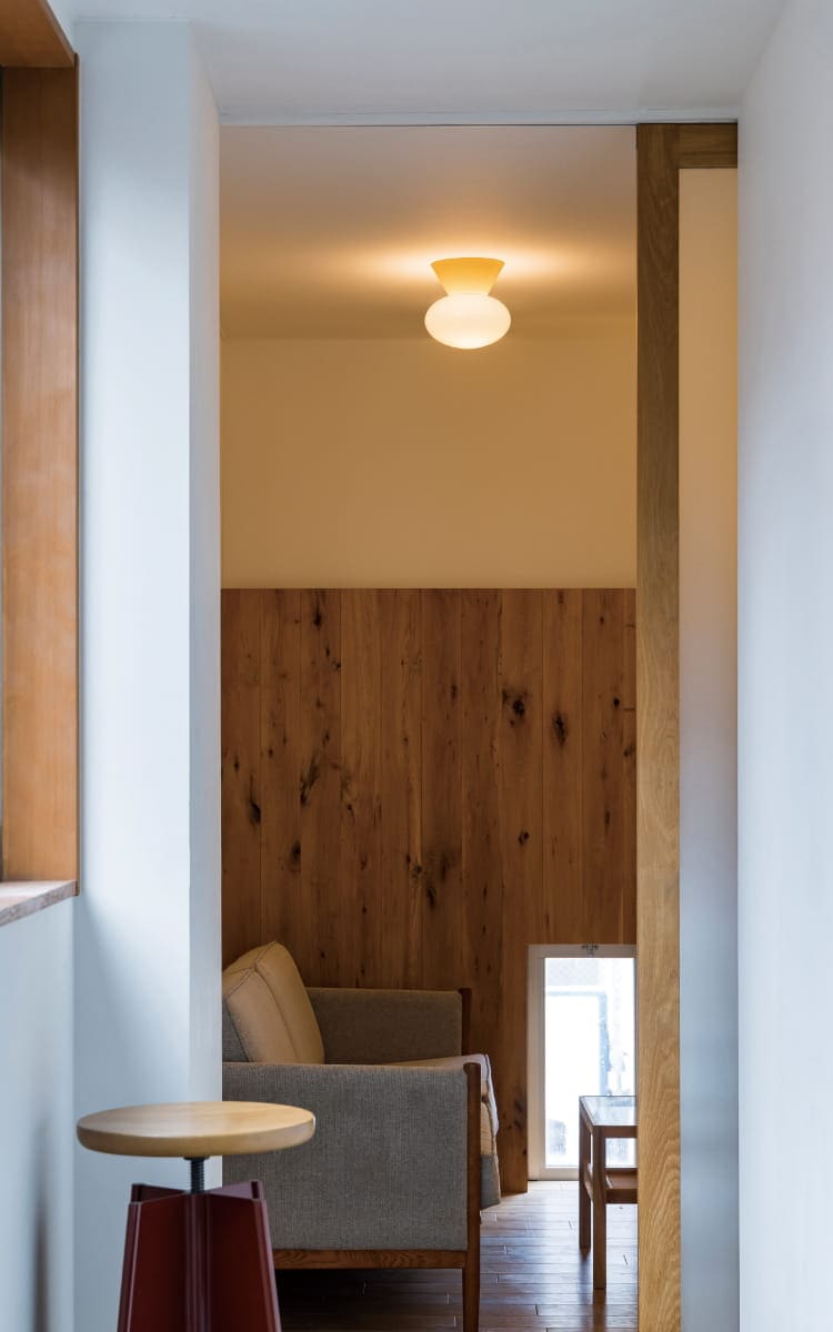 ミニマルな要素の中に潜ませた、ざらつきのあるシーリングカバーとツヤのあるガラスのコントラストもポイントです。