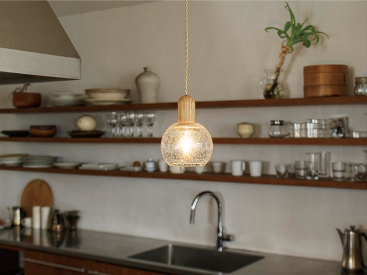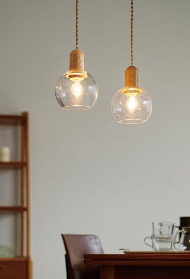 ソケットにあしらったウッドとガラスの組み合わせが、ほっと一息つける幸せな時間に寄り添います。